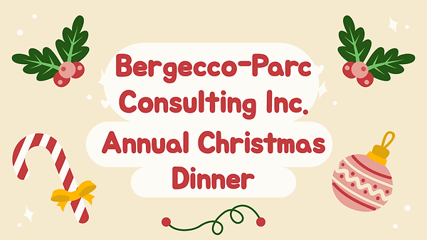 The co-founders of Bergecco-Parc Consulting Inc. have asked our Team to create invitations, short menus, and a Christmas welcoming message to promote the Corporate Christmas Party in New Brunswick and to represent the company. Below you will see what each Division has come up with as well as the videos where we wish you all a Merry Christmas!